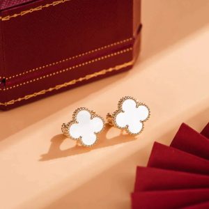 Enhance your look with our Clover Medium White Mop Pink Gold Earrings. Crafted with premium materials, they boast a distinctive clover design and a stunning pink gold coating that exudes sophistication for any event. A must-have for every outfit.