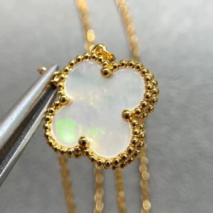 The Clover Pendant White Mop Necklace is a stylish, durable accessory made with high-quality white mother of pearl, perfect for any occasion.